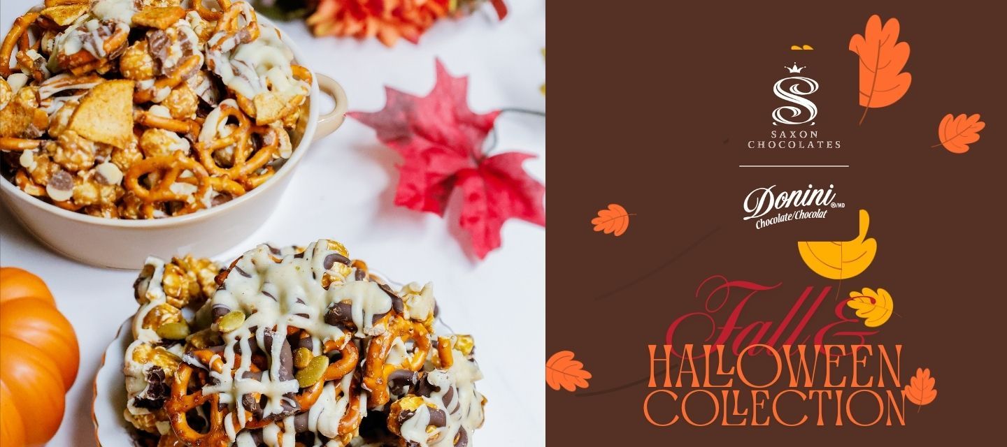 A delicious mixture of caramel popcorn, roasted almonds, pretzels, and gourmet dark and white chocolate -